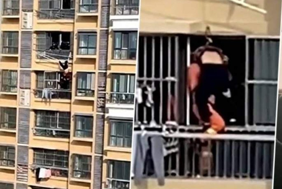 ঘটনা দক্ষিণ চীনের জিয়াংসু প্রদেশের ইয়াংঝুতের। ওই বৃদ্ধা বারান্দায় কাপড় মেলতে গিয়ে নিয়ন্ত্রণ হারিয়ে পড়ে যান। বৃদ্ধা ১৯ তলা থেকে পড়ে যাওয়ার পর ১৮ তলার বারান্দার রেলিংয়ে লাগানো র্যাকে তার পা আটকে যায়। তখন তার মাথা, বাহু আর শরীরের উপরের অংশ ১৭ তলায় ঝুলতে থাকে।
