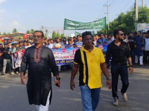 এ সময় ভূমিমন্ত্রী সাইফুজ্জামান চৌধুরী জাবেদ এমপিকে স্বাগত জানিয়ে মুহুর্মুহু স্লোগান দেন মিছিলে অংশগ্রহণকারীরা। মিছিলের অগ্রভাগে ছিল বঙ্গবন্ধু শেখ মুজিবুর রহমান, প্রধানমন্ত্রী শেখ হাসিনা, প্রয়াত আখতারুজ্জামান চৌধুরী বাবু, ভূমিমন্ত্রী সাইফুজ্জামান চৌধুরী জাবেদ এমপিসহ যুবলীগ নেতাদের ছবিসহ ব্যানার। দক্ষিণ জেলা যুবলীগের গ্রন্থনা ও প্রকাশনা সম্পাদক এএইচ. এম ওসমান গনি রাসেল বলেন, আমাদের রাজনৈতিক অভিভাবক ভূমিমন্ত্রী সাইফুজ্জামান চৌধুরী জাবেদ এমপি মহোদয়কে স্বাগত জানাতে মিছিল সহকারে জনসভায় যোগ দিয়েছি আমরা। আমাদের মিছিলে যুবলীগ ও ছাত্রলীগের কয়েক হাজার নেতা-কর্মী ছিলেন। আগামী জাতীয় সংসদ নির্বাচনে সফল ভূমিমন্ত্রী সাইফুজ্জামান চৌধুরী জাবেদ এমপিকে আবারো নৌকা প্রতীকে নির্বাচিত করার জন্য যুবলীগ প্রস্তুত। স্মরণকালের সবচেয়ে বড় এ শোক সভায় লাখো নেতা-কর্মীর স্বতঃস্ফূর্ত অংশগ্রহণে জনসমুদ্রে পরিণত হয়। শিকলবাহাসহ বিভিন্ন স্থানে বড় পর্দায় প্রচার করা হয় ভূমিমন্ত্রীর ভাষণ। দক্ষিণ জেলা যুবলীগের সভাপতি মো. দিদারুল ইসলাম চৌধুরীর সভাপতিত্বে শোক সভায় প্রধান অতিথি ভূমিমন্ত্রী সাইফুজ্জামান চৌধুরী জাবেদ এমপি বলেছেন, ‘বিএনপি পিছনের দরজা দিয়ে ক্ষমতায় এসে গণতন্ত্রকে ধ্বংস করেছে। ক্ষমতায় থাকতে লুট করে খেয়েছে, আর এখন ক্ষমতার বাইরে থেকে ধ্বংসযজ্ঞ চালাচ্ছে। এখন তারাই গনতন্ত্র নিয়ে কথা বলে। গণতন্ত্রের মুখোশদারীদের রাজপথে প্রতিরোধ করতে হব।’ ভূমিমন্ত্রী আরও বলেন, ‘আওয়ামী লীগ সরকার উড়ে আসেনি ধাক্কা দিলে পড়ে যাবে। আন্দোলন সংগ্রামের মধ্যদিয়ে এসেছে। আন্দোলনের আমাদের দেখিয়ে কোনো লাভ নেই। আওয়ামী লীগ সরকার যতদিন ক্ষমতায় থাকবে ততদিন দেশ শান্তিতে থাকবে। শেখ হাসিনা সরকারের উন্নয়নের বার্তা মানুষের ঘরে-ঘরে পৌঁছে দিতে হবে আমাদের। আমরা ক্ষমতায় না গিয়ে ঘরে ফিরব না, লড়াই চলবে।’ সাধারণ সম্পাদক বোয়ালখালীর মেয়র মো. জহুরুল ইসলাম জহুরের সঞ্চালনায় বিশেষ অতিথির বক্তব্যে রাখেন জেলা যুবলীগের সভাপতি মোতাহেরুল ইসলাম চৌধুরী, সাধারণ সম্পাদক মফিজুর রহমান, সাতকানিয়া-লোহাগড়া আসনের সংসদ সদস্য প্রফেসর আবু রেজা মু. নেজাম উদ্দিন নদভী, প্রধান বক্তা কেন্দ্রীয় যুবলীগের সাংগঠনিক সম্পাদক মো. সাইফুল ইসলাম সোহাগ। সভায় কর্ণফুলী উপজেলা আওয়ামী লীগের সভাপতি ও উপজেলা চেয়ারম্যান ফারুক চৌধুরীসহ জেলা-উপজেলা আওয়ামী লীগ, যুবলীগ, ছাত্রলীগের কয়েক হাজার নেতাকর্মীরা।