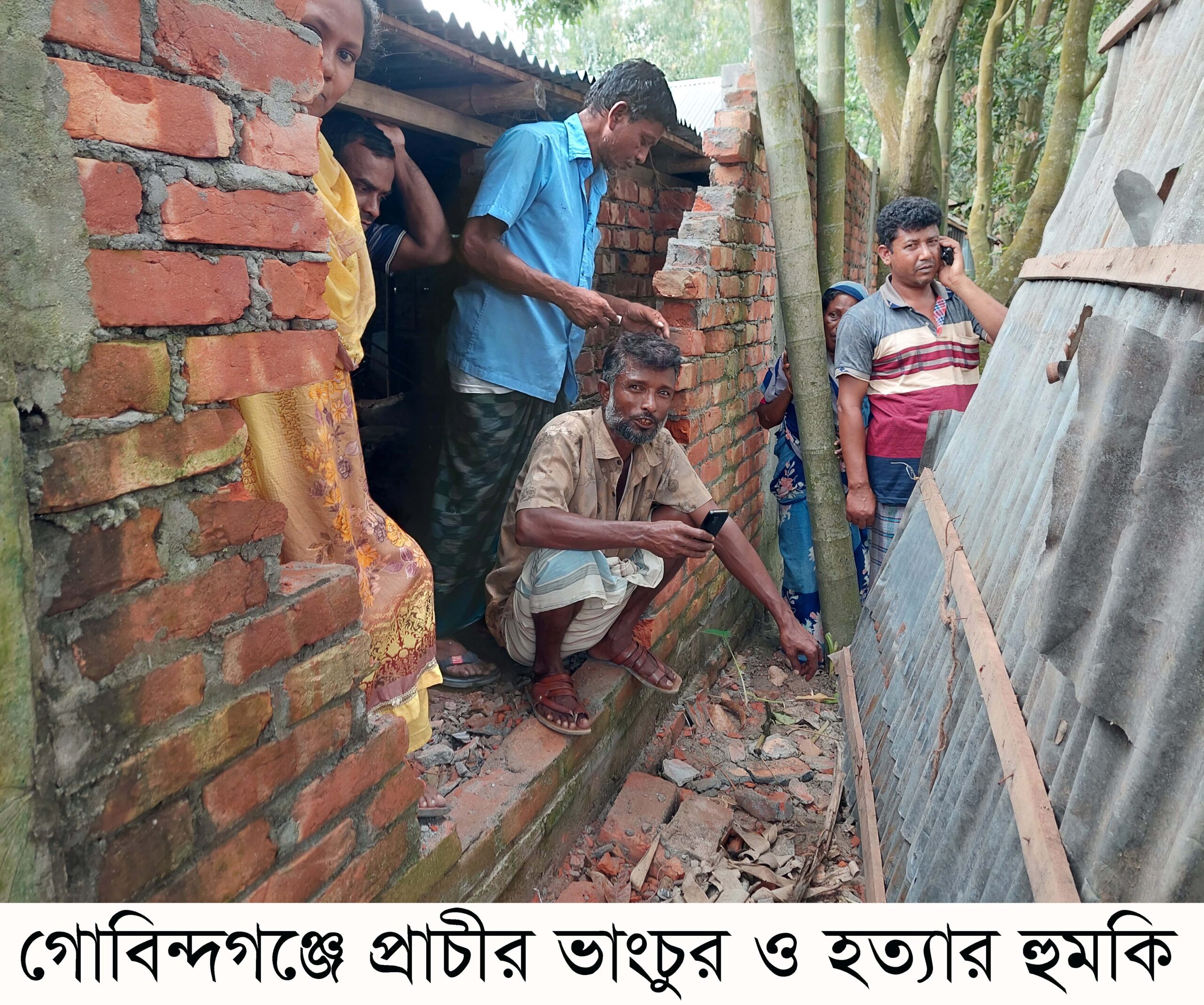 গোবিন্দগঞ্জে প্রাচীর ভাংচুর ও হত্যার হুমকি