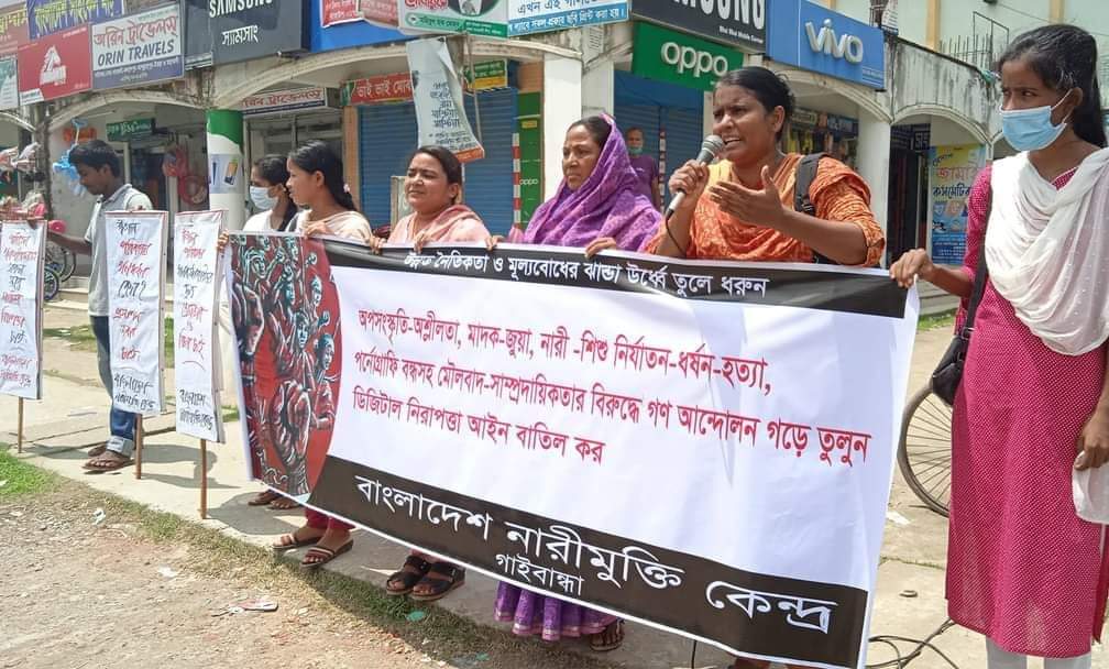 চলন্ত বাসে ডাকাতি ও নারী ধর্ষণের প্রতিবাদে বিক্ষোভ সমাবেশ
