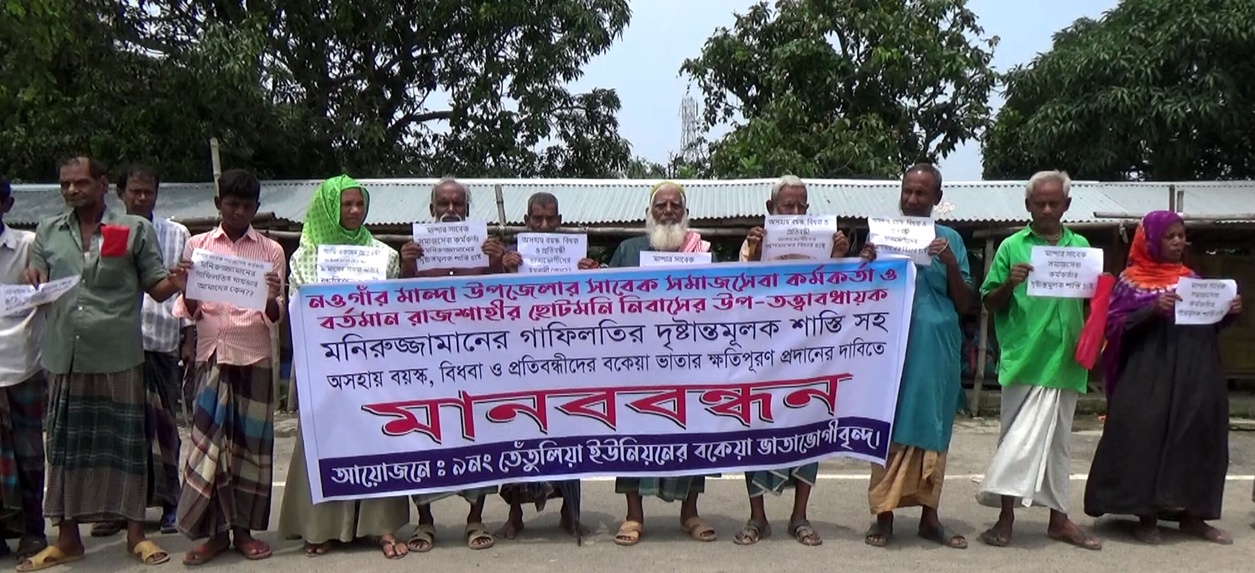 মান্দায় বকেয়া ভাতার দাবীতে ভাতাভোগীদের মানববন্ধন