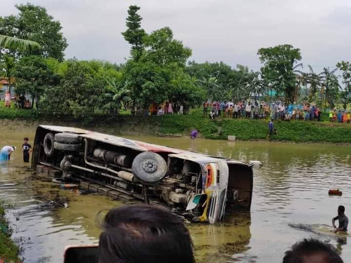 ফুলপুরে নিয়ন্ত্রণ হারিয়ে বাস পুকুরে পড়ে বাসের হেল্পার নিহত