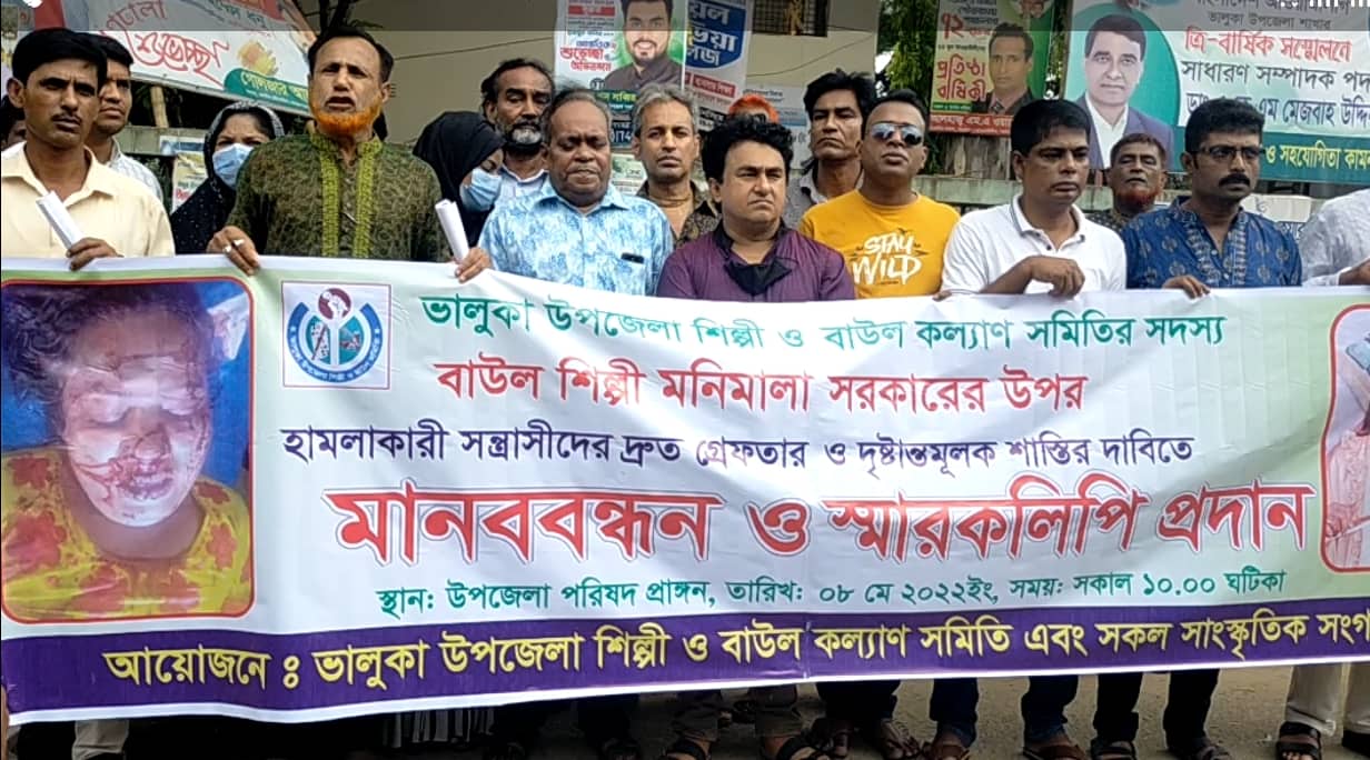 ভালুকায় বাউল শিল্পীর উপর হামলার প্রতিবাদে মানববন্ধন