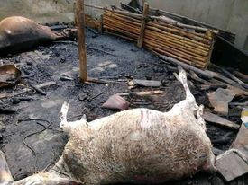 নওগাঁয় গভীর রাতে গোয়াল ঘরে আগুন; গরু ছাগল পুড়ে ছাই