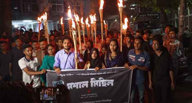 জবি শিক্ষার্থীদের ৬ দাবিতে মশাল মিছিল