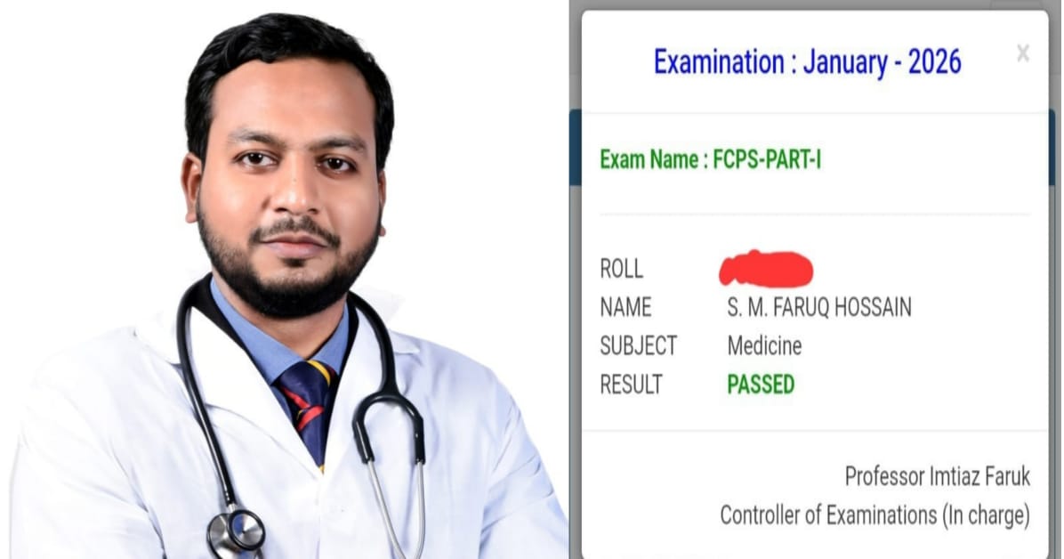 এফসিপিএস পার্ট-১ উত্তীর্ণ হয়েছেন ডা. এস এম ফারুক হোসাইন