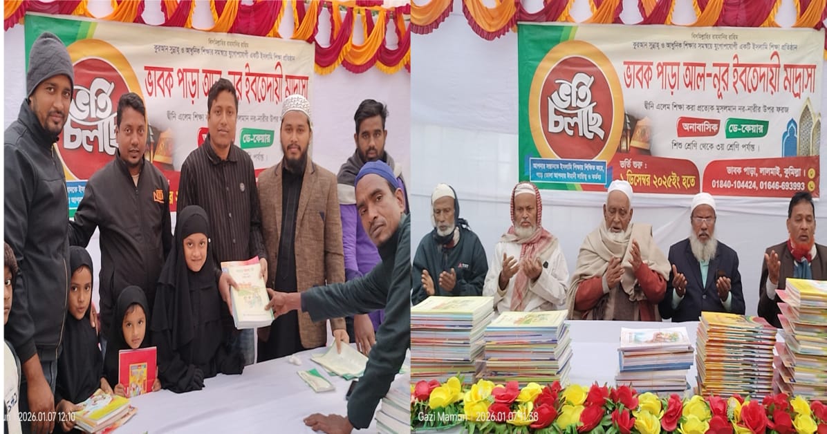 ভাবকপাড়া আল-নূর ইবতেদায়ী মাদ্রাসায় নতুন বই বিতরণ