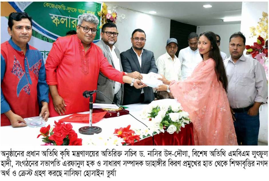 বাজিতপুর রাজ্জাকুন্নেছা সরকারী বালিকা উচ্চ বিদ্যালয়ের শিক্ষার্থী তুর্যা পেল শিক্ষাবৃত্তি : (কেজেএফডি)