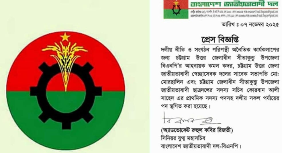 সীতাকুণ্ড উপজেলা বিএনপির আহ্বায়কসহ ৩ নেতার পদ স্থগিত।