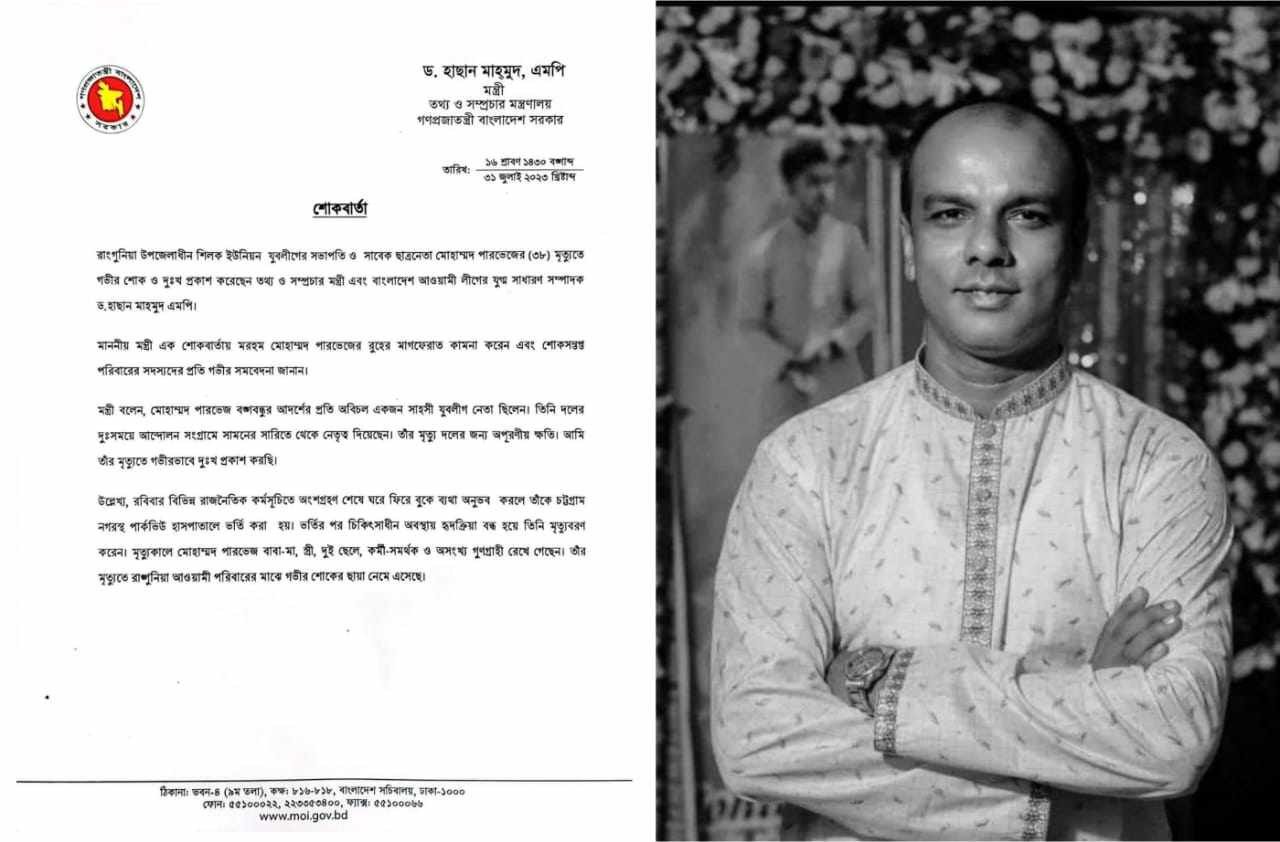 যুবলীগ নেতা পারভেজের মৃত্যুতে তথ্যমন্ত্রীর শোক