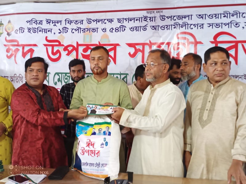 ছাগলনাইয়া উপজেলা আওয়ামীলীগের নেতাকর্মীদের মাঝে ঈদ উপহার বিতরণ