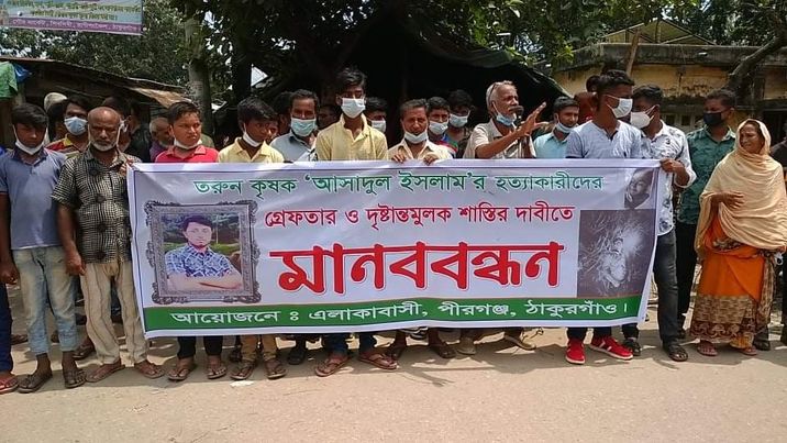 রাণীশংকৈলে আসাদুল হত্যার এক মাস পেরিয়ে গেলেও আসামি গ্রেফতার না হওয়ায় মানববন্ধন